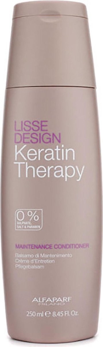Parabeen, sulfaat en zoutvrije conditioner Voedt en hydrateert het haar en helpt het behoud van en het verlengen van de cosmetische effecten verkregen met salon behandelingen. De formule, verrijkt met keratine en Babassu olie laat het haar zacht, zonder knopen en glanzend aanvoelen. HOE TE GEBRUIKEN Na het wassen, op handdoek droog haar verdelen en laat gedurende 3 minuten inwerken. Kam door het haar en goed uitspoelen. Let op ; Deze conditioner is speciaal voor gebruik na een Alfaparf Lisse keratine behandeling.
