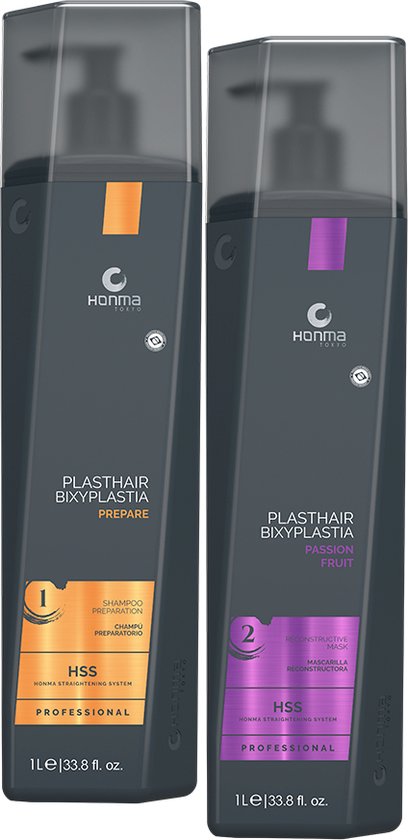 Honma Tokyo Haarmasker / Haarverzorging - Voor dik en gekruld blond haar te stylen - PlastHair Premium - Passion Fruit - Stap 1 & 2 - 1000 ml