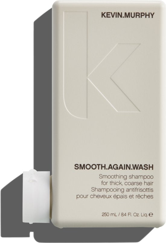 Een anti-frizz shampoo waarmee pluizig en dik haar op een milde wijze wordt gereinigd, zodat pluis geen schijn van kans maakt. Kevin Murphy Smooth.Again.Wash Shampoo is een mild reinigende shampoo voor dik, onhandelbaar en krullend haar. De shampoo gaat pluizen tegen en zorgt voor zacht, glanzend en sterker haar. Kevin Murphy Smooth.Again.Wash Shampoo bevat Monoi olie en zonnebloemextracten die het haar beschermt, kalmeert, verzacht en gladder maakt. Daarnaast laat de shampoo het haar glanzen en versterkt het haar. Hoofdingrediënten: * Monoï olie: Lichtgewicht olie die je haar van binnenuit herstelt en je haaroppervlak glad maakt. * Zonnebloem olie: Rijk aan vitamine E en Oliezuren die je haar verzachten en gladstrijken. * Murumuru boter: Rijk aan essentiële vetzuren die helpen om het vochtgehalte van je haar in balans te brengen. * Olijfolie: Doet de natuurlijke oliën in je haar en beschermt zo tegen hitte en stylingproducten.