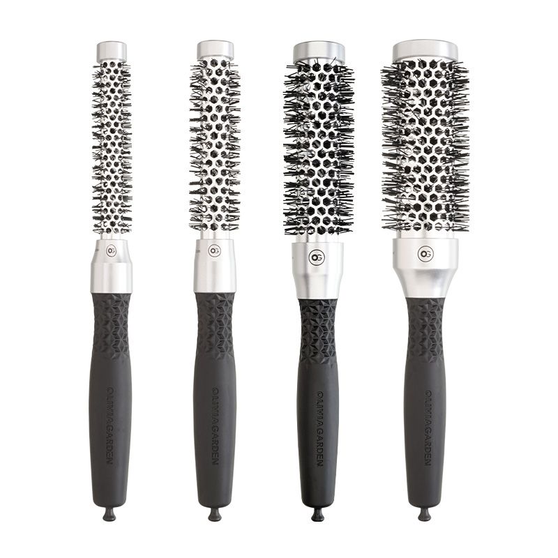 De Olivia Garden Essential Borstel Blowout Classic Silver is ideaal voor dagelijks gebruik in de salon of thuis. De borstel is voorzien van een keramische coating waardoor deze sneller opwarmt, met snellere en betere styling als resultaat. De borstelharen bevatten Tourmaline Ion technologie waardoor het haar meer glans krijgt en pluis geëlimineerd wordt. Door de grotere ventilatiegaten en het speciale design bovenop de borstel creëert deze borstel een betere airflow, wat ervoor zorgt dat het haar sneller droogt. De borstel Het handvat heeft een vaste grip, waardoor de borstel goed in de hand blijft liggen tijdens het föhnen. Daarnaast heeft de borstel een antistatische werking en krijgt het haar een mooie glans na gebruik. Aan de onderkant van de borstel zit een uitneembare pin die gebruikt kan worden om het haar te verdelen. De pin kan er uitgeschoven worden en aan de onderkant van de borstel worden vastgemaakt. De borstel is verkrijgbaar in de maten: Ø10mm, Ø15mm, Ø25mm, Ø35mm, Ø45mm, Ø55mm en Ø65mm.